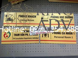 Mẫu sản phẩm này có chức năng chủ yếu là thông tin, chỉ dẫn vì thế thường được gia công với kích thước vừa phải, vị trí là được gắn trên cửa mỗi phòng khám giúp khách hàng bệnh nhân nhìn thông tin trên biển sau đó tìm đến phòng chuyên môn một cách nhanh chóng. Hiện nay các mẫu biển này cũng được được thiết kế đẹp, hài hòa với không gian, nó còn giúp cho hình ảnh bệnh viện, phòng khám của bạn trông rất ấn tương và chuyên nghiệp