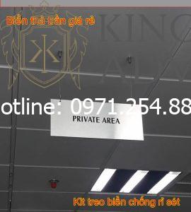Bên cạnh đó, các biển thả trần còn có lợi thế là dễ thi công, đặc biệt khi sản phẩm bộ kit treo tranh treo biển quảng cáo ra đời thì việc thi công loại biển này lại càng trở nên dễ dàng. Nhất là công đoạn gắn biển với dây treo, được thực hiện một cách thuận tiện hơn nhờ các dầu kẹp biển thả trần giá rẻ